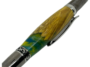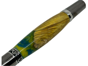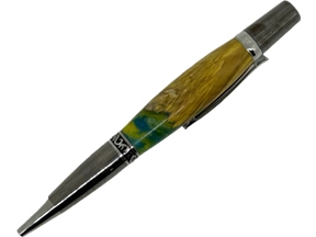 Sierra Twist pen in black titanium and platinum hand turned with dyed Box Elder in Blue and Green Resin.